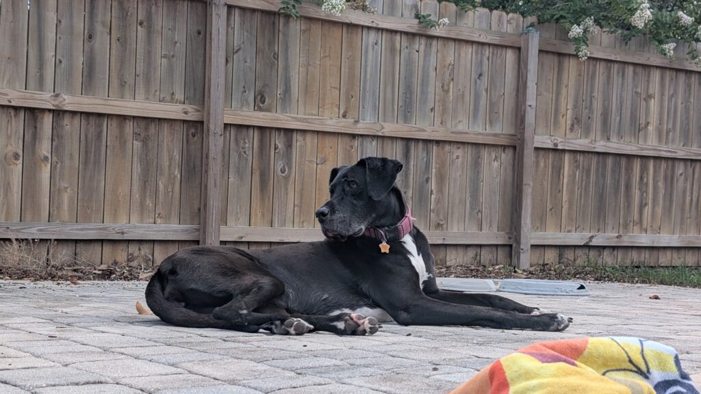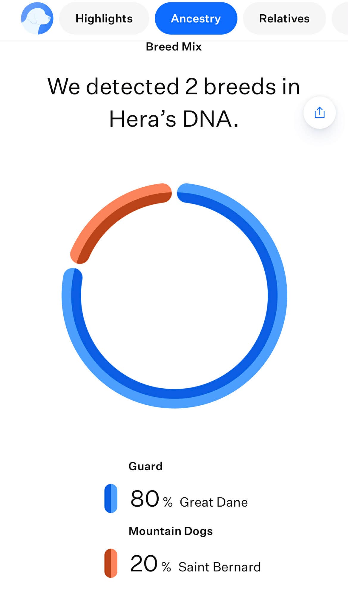 Hera (DOB August 2020) is a Great Dane/St. Bernard mix weighing in at 116# (DNA results below).  She is a laid-back girl with an easy rhythm—she’s unhurried, thoughtful and content to take in the world at her own pace. She’s naturally affectionate yet independent, happy to show love while also enjoying her own space. Comfortable simply being near her people, she doesn’t need constant interaction or attention.